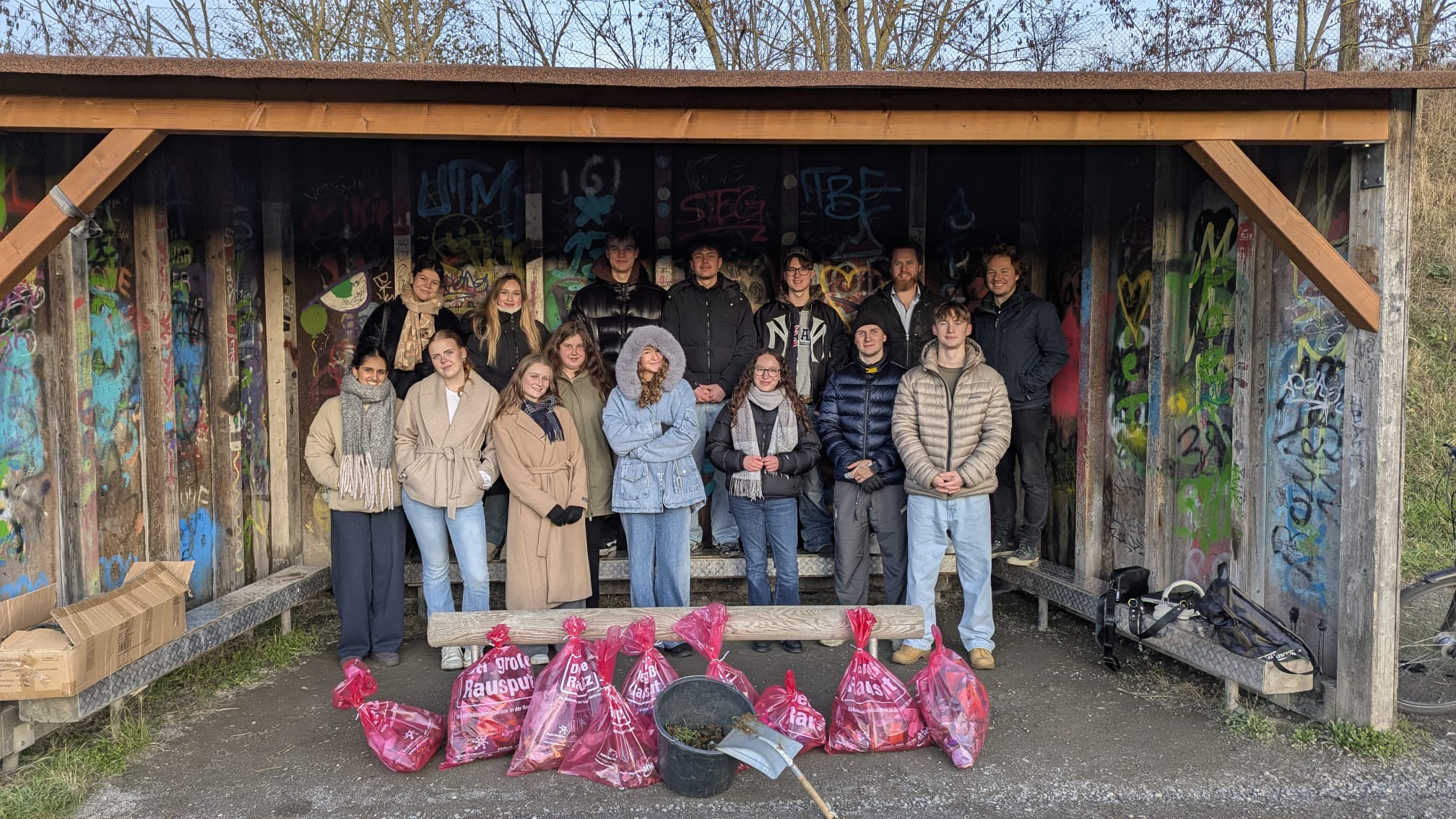 Alle 13 Schülerinnen und Schüler des Fachs waren pünktlich um 15 Uhr am Eingang zum Schützenplatz. Es waren auch zwei Lehrer dabei die den Kurs begleitet haben.
