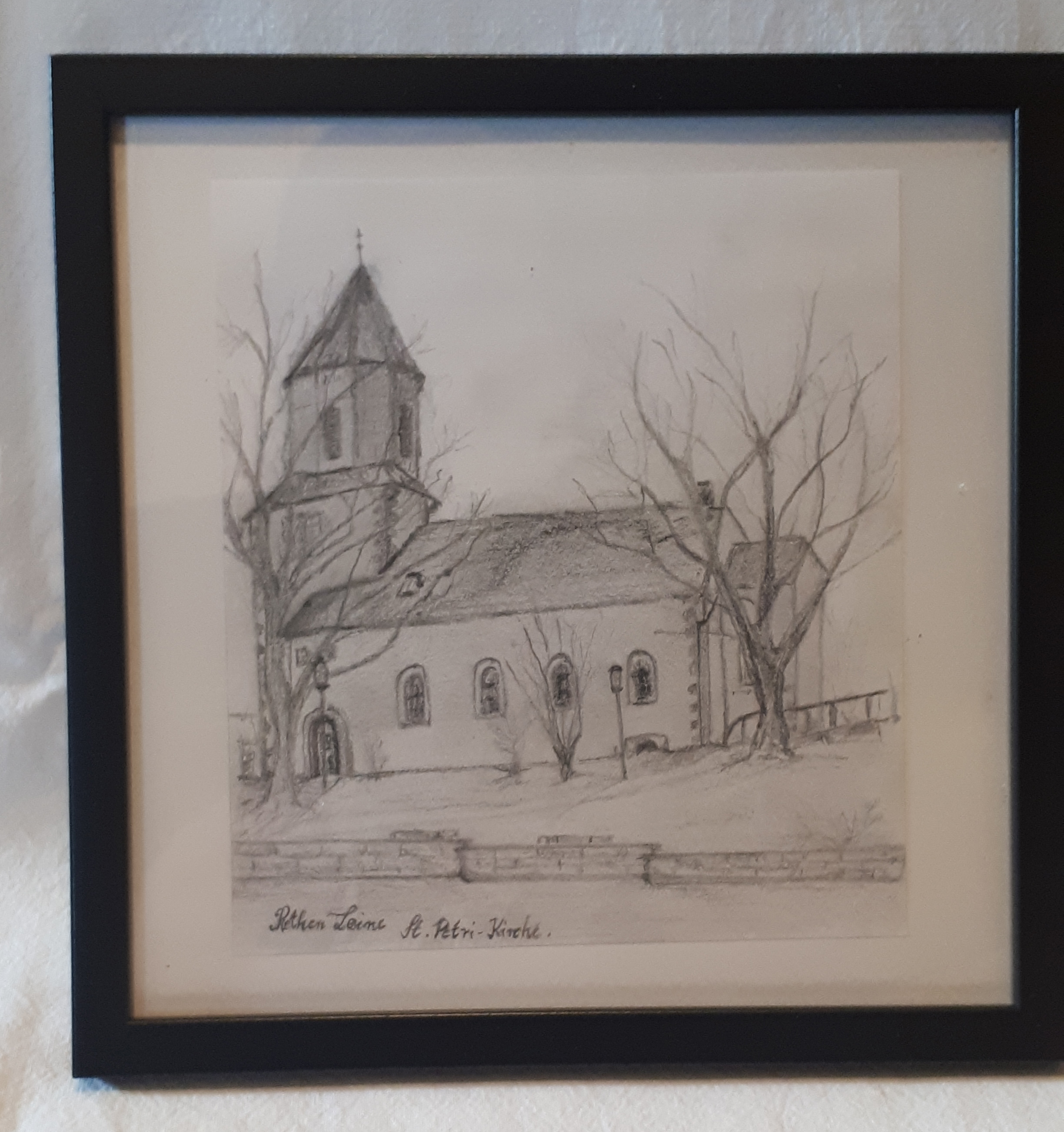 den du da trägst. Ein wundervolles kleines Bild unserer Kirche, aus der Zeit vor dem zweiten Weltkrieg. Hier noch mit Zwiebelturm! Eine absolut tolle Zeichnung!